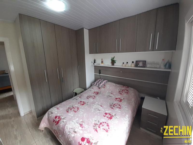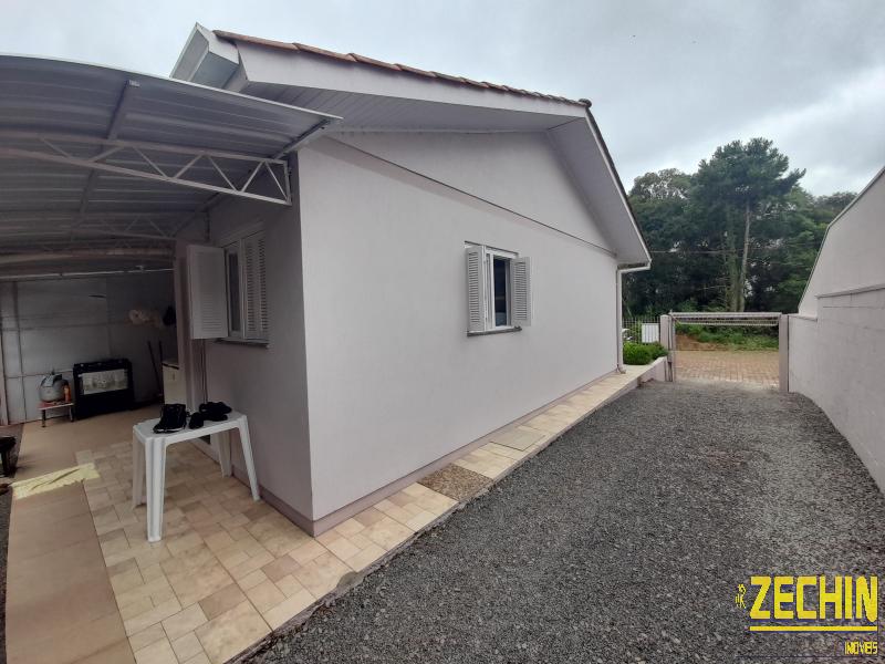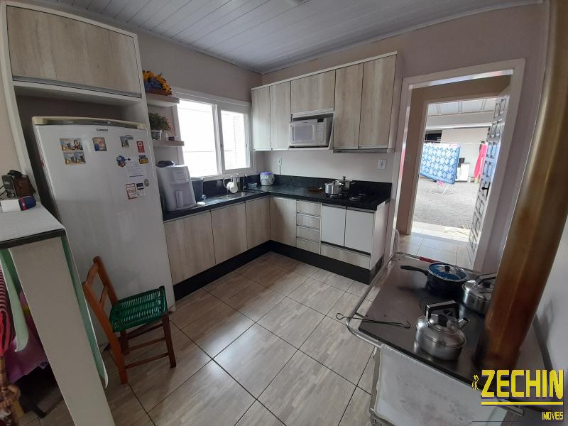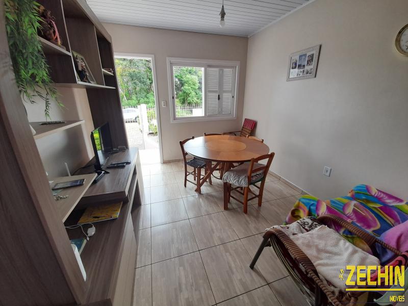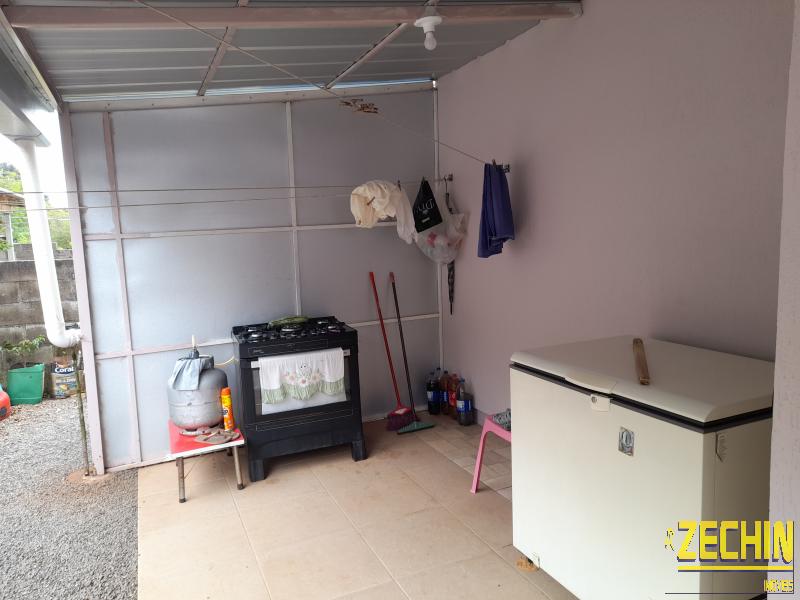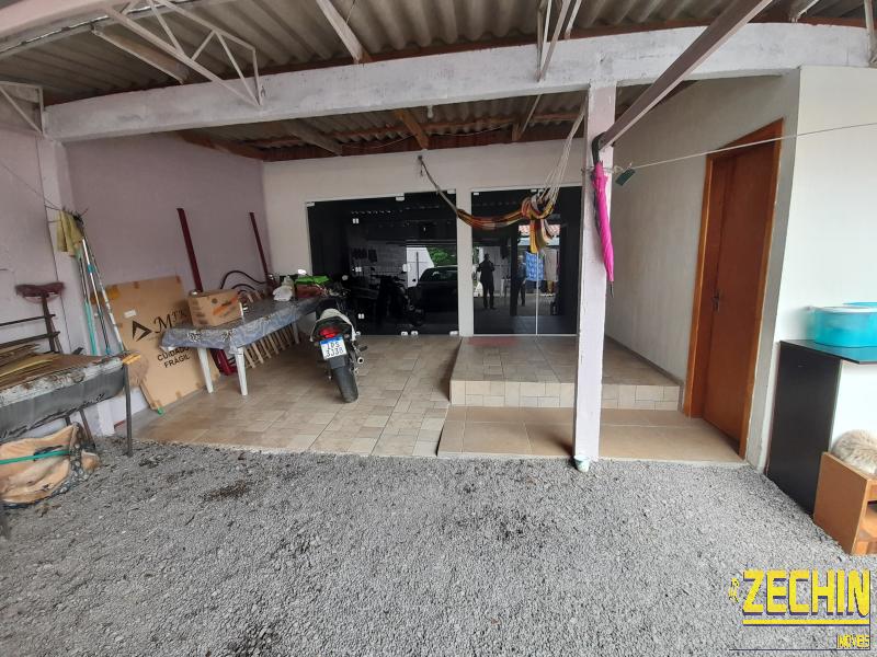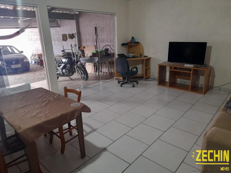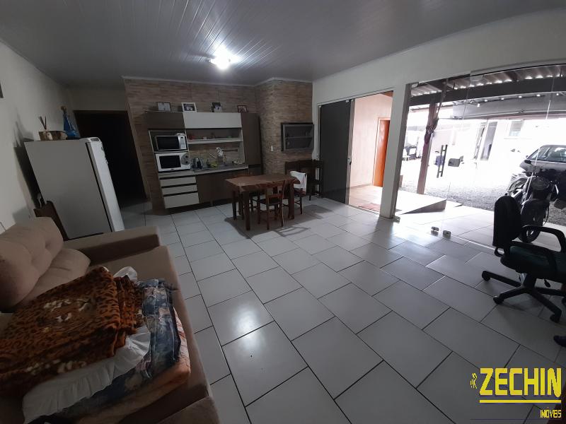 Casa de fundos com 2 dormitórios, sala e cozinha integrada, banheiro, garagem, churrasqueira e área de serviço.
