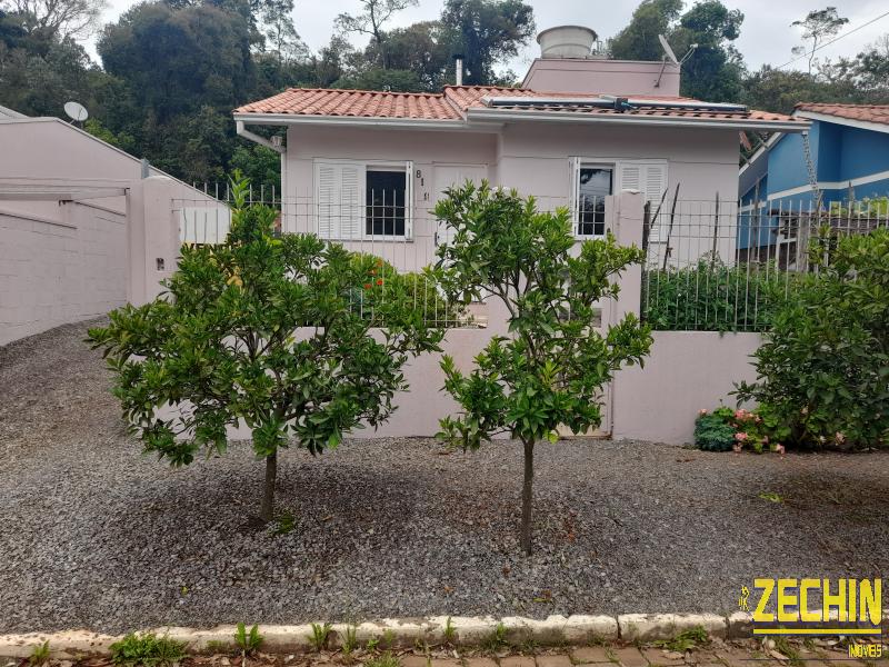 Casa frontal com 2 dormitórios sendo um mobiliado, sala de estar, cozinha com móveis sob medida, banheiro completo, despensa, área de serviço, placa solar e varanda.